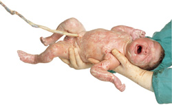 Ahora bien, los efectos de la adrenalina durante el proceso del nacimiento prueban ser más complejos en este caso. Ambos, la madre y el bebé, experimentan picos de adrenalina durante las ultimísimas contracciones que preceden al nacimiento. Con ello se permite y facilita a la madre estar alerta cuando nace el bebé; además, para los mamíferos supone una ventaja añadida, ya que liberan energía suficiente para proteger al recién nacido. Otro de los efectos derivados de tal cantidad de adrenalina disponible en el organismo del feto es que, igualmente, éste entra en el nacimiento en estado de alerta, con los ojos bien abiertos y las pupilas dilatadas, de ahí la fascinación de las madres por la mirada de sus criaturas recién nacidas. Aparentemente, este contacto visual representa para los humanos una piedra de toque fundamental en el comienzo de la relación madre-bebé. Hemos de destacar en este punto que las hormonas de la familia de la adrenalina, tan generalmente relacionadas con la agresión, cumplen un rol muy específico en la interacción madre-bebé durante la hora siguiente al nacimiento.