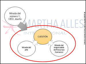 Tanto el jefe como el área de Recursos Humanos tienen y aportan una mirada particular sobre cada tema. Cada tema o cuestión puede ser analizado desde diferentes ángulos. Cómo resolver la cuestión desde la mirada del jefe. Los jefes suelen ser pragmáticos, y muchas veces resuelven sus problemas desde el sentido común. El aporte que se realiza en estos casos será contemplando los intereses de todo directivo/ jefe no especialista en RRHH, que debe cumplir una serie de roles específicos en relación con las personas a su cargo por su rol de jefe. Cómo resolver la cuestión desde la mirada del responsable de Recursos Humanos. En la mayoría de los casos, el área de Recursos Humanos debería asumir un rol protagónico con relación a los temas tratados en cada cuestión, ya sea implementando herramientas adecuadas a cada situación como formando y entrenando a los jefes y directivos sobre la mejor manera de hacer las cosas.